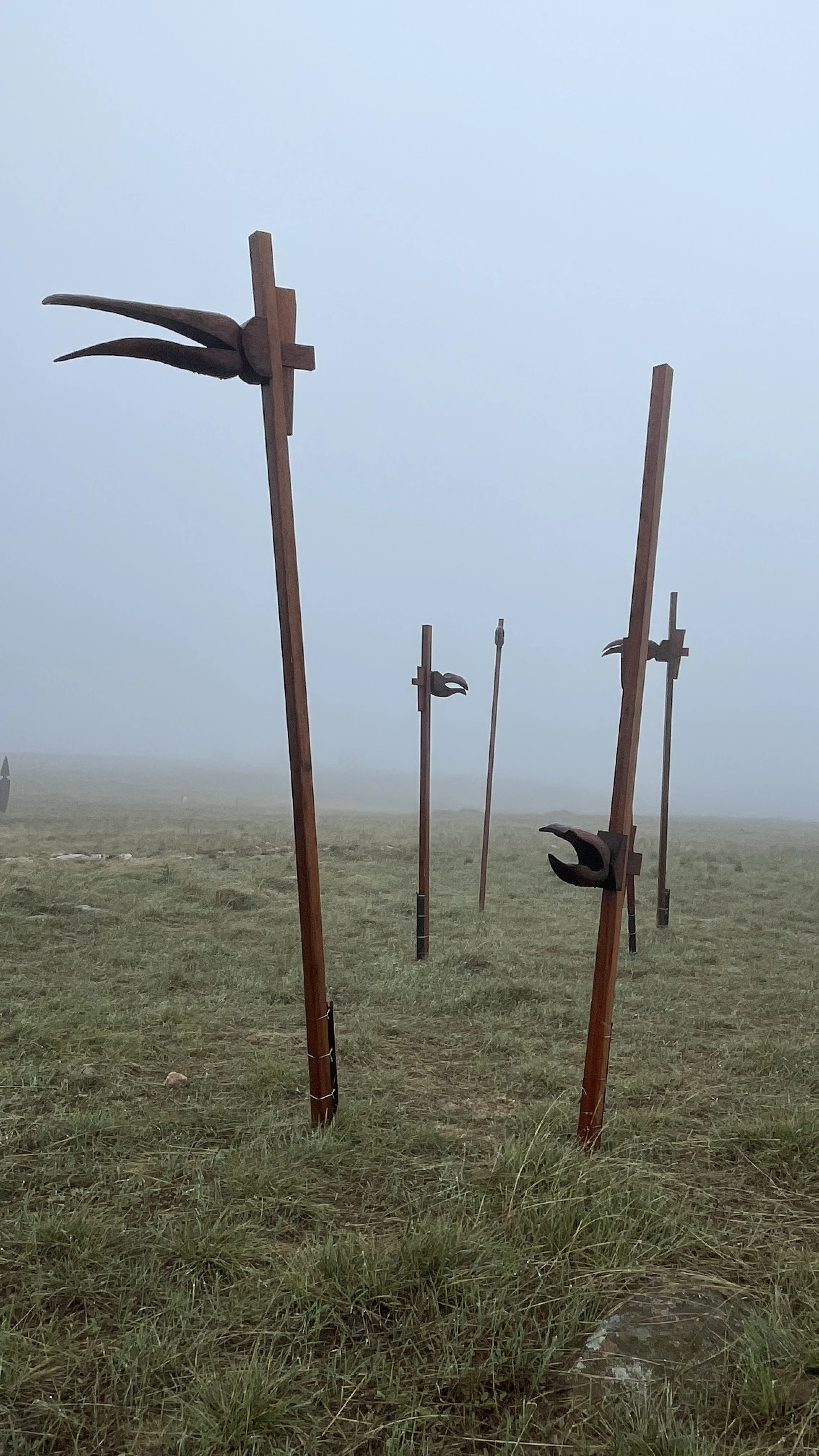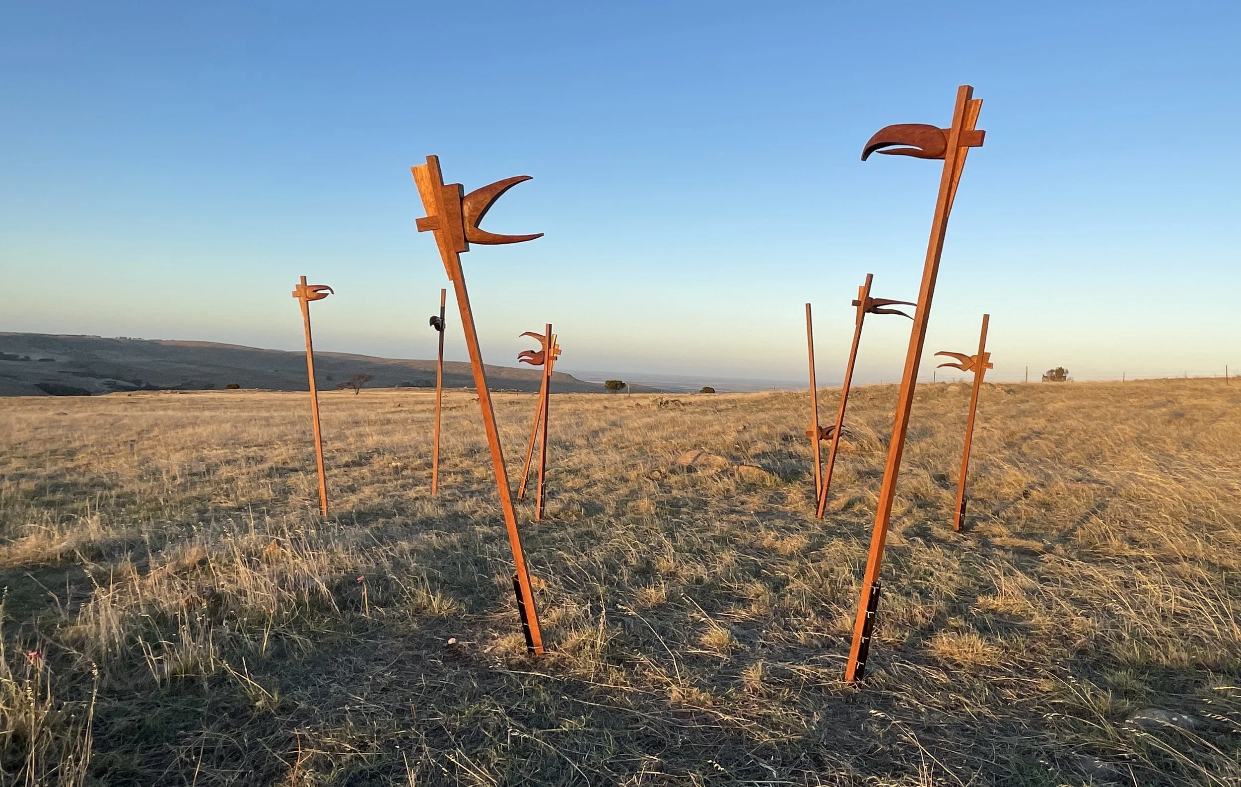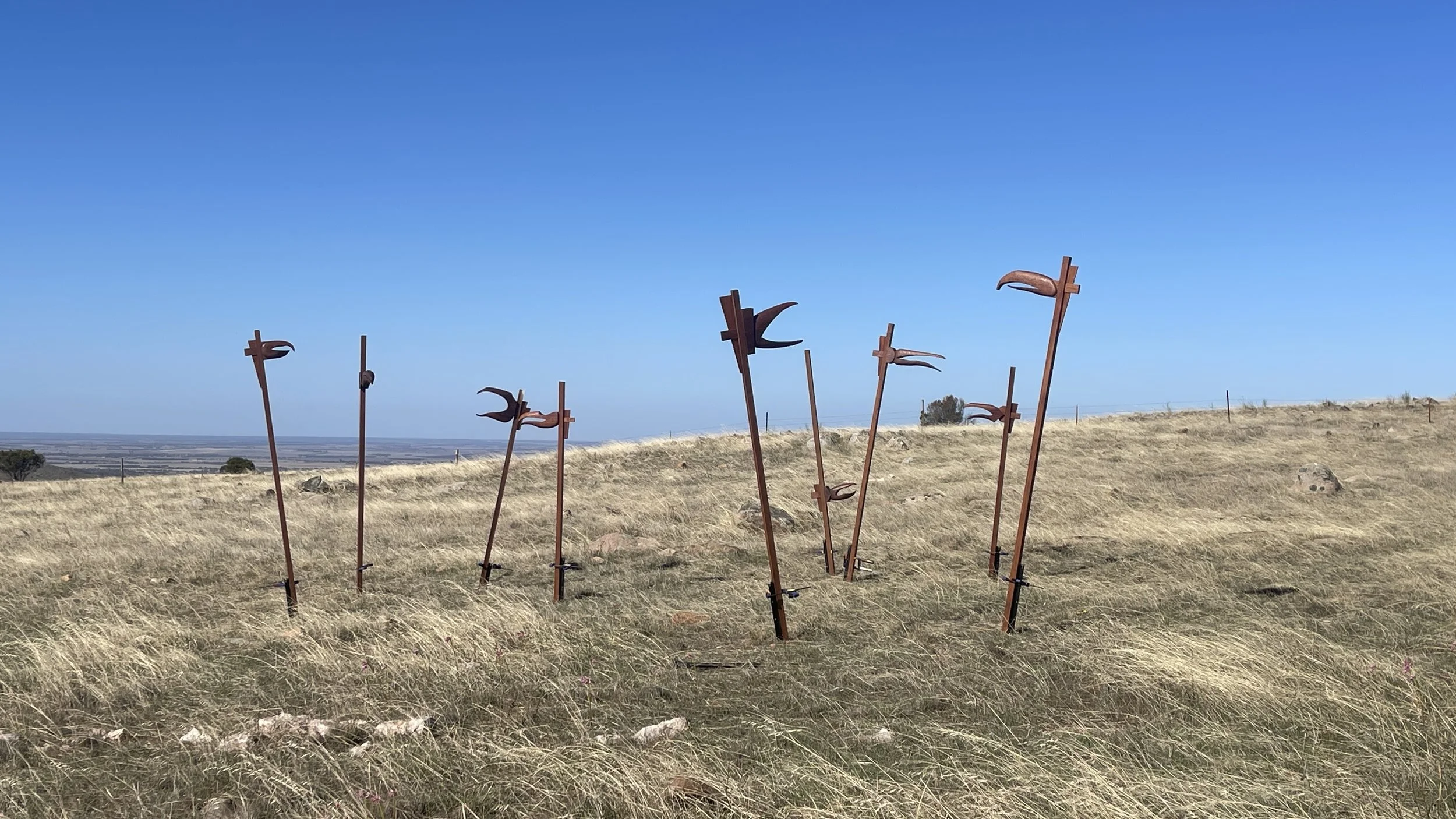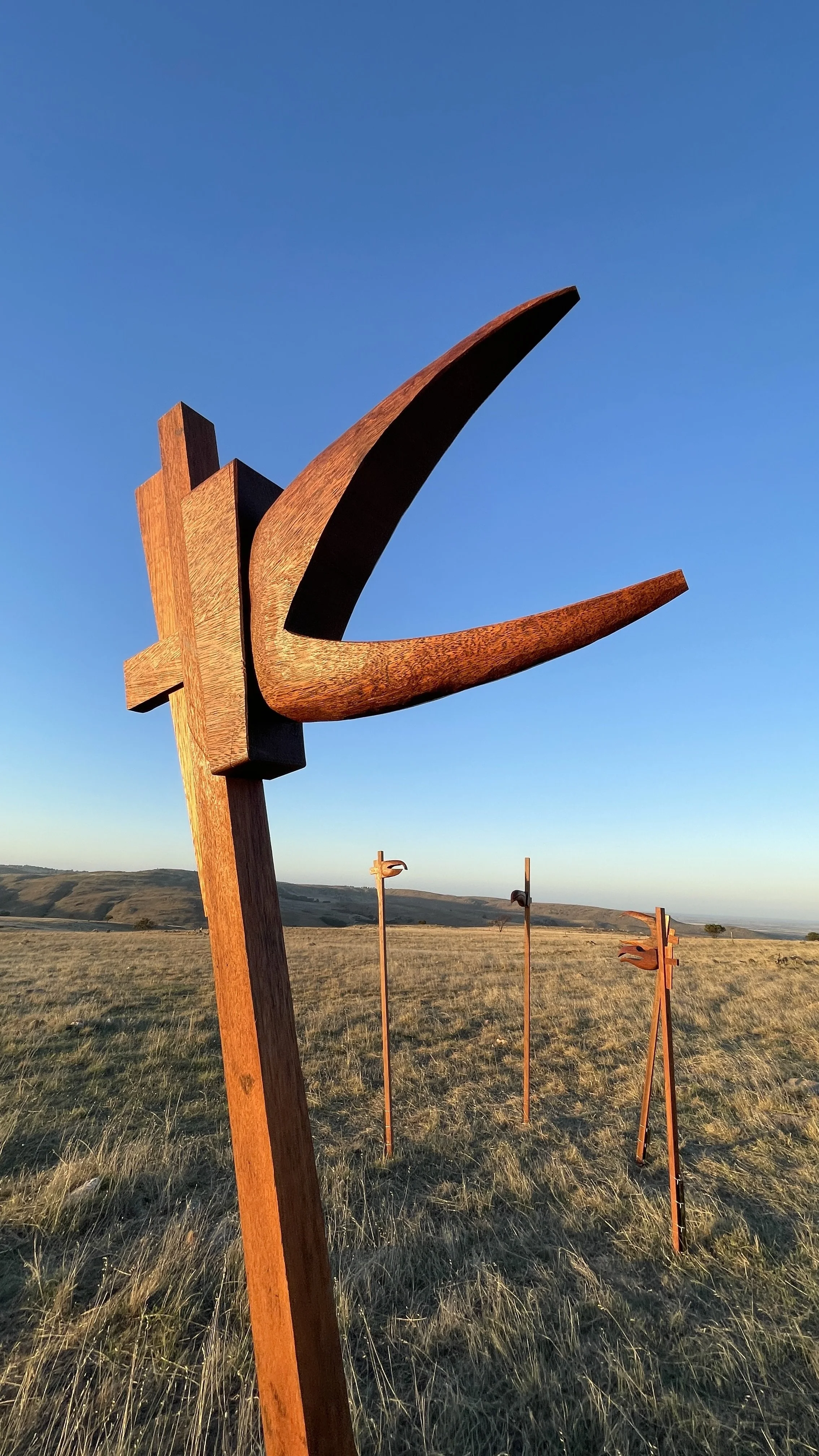 Installed at the 11th Palmer Sculpture Biennial, South Australia in March 2024. Sixteen mutating wooden ants crawl across the Palmer landscape.
